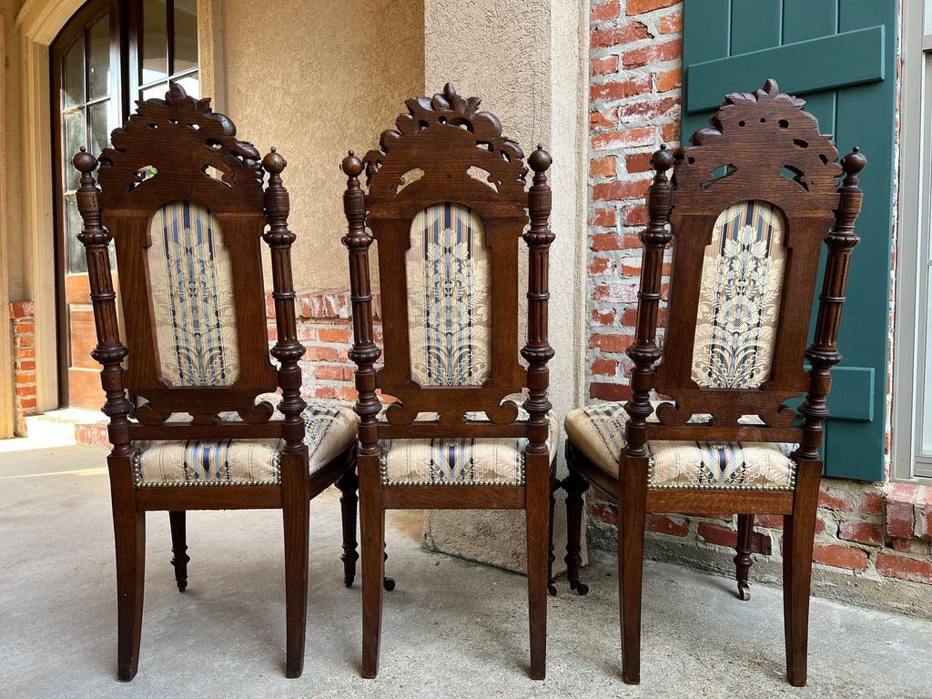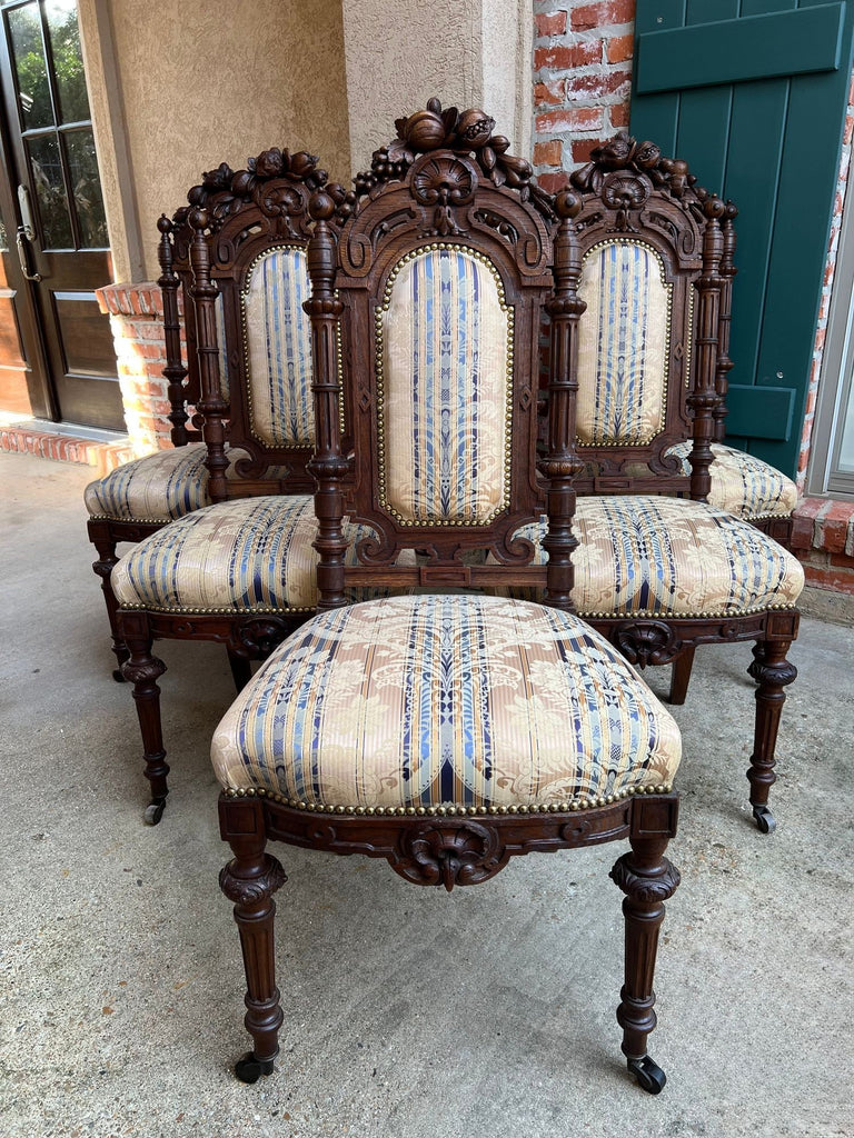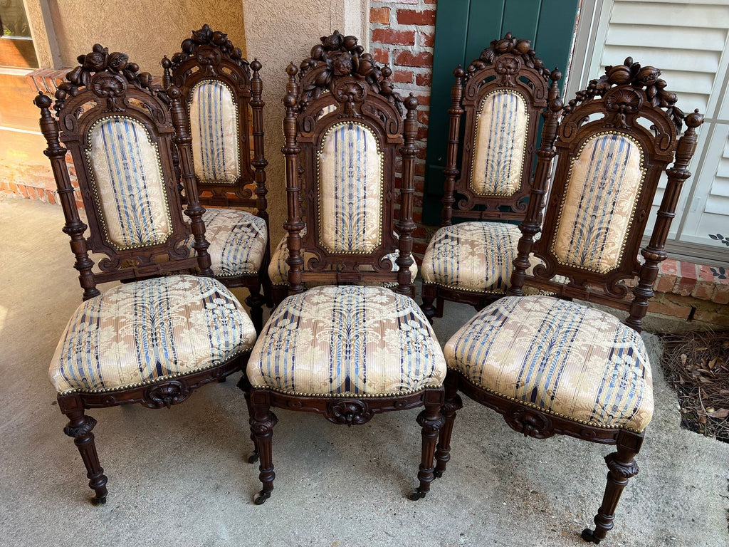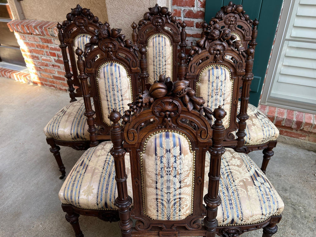 Set 6 Antique French Dining Chairs Renaissance Carved Oak Black Forest c1880
