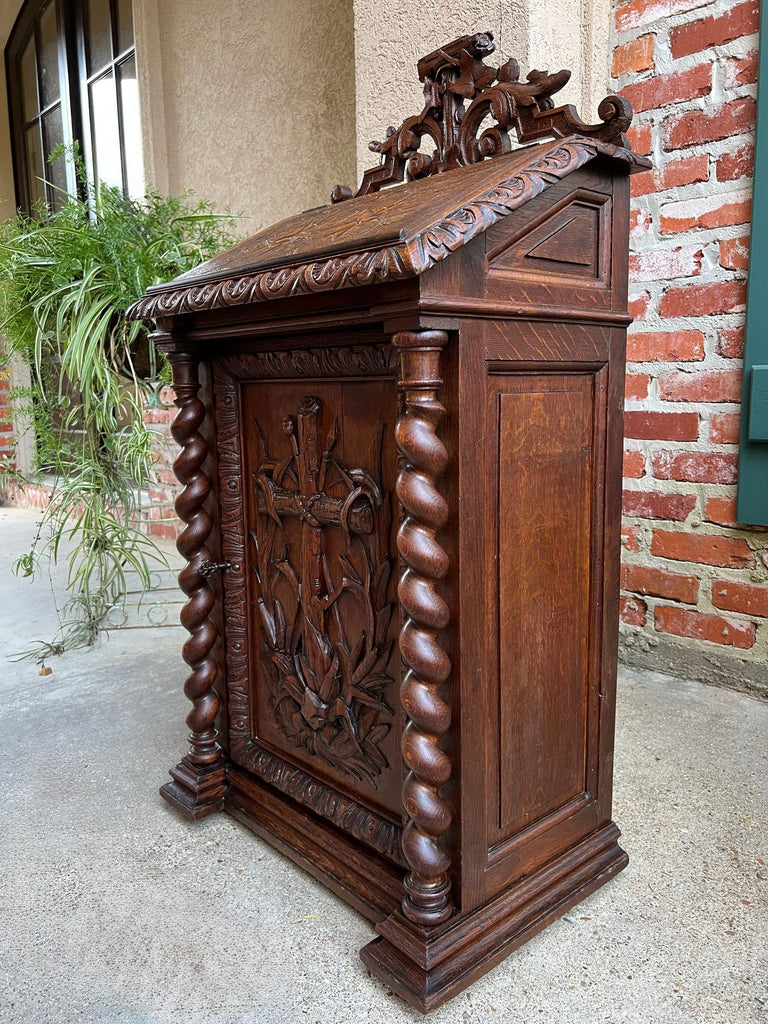 Antique French Altar Lecturn Gothic Bible Box Podium Sacristy Cabinet Carved Oak