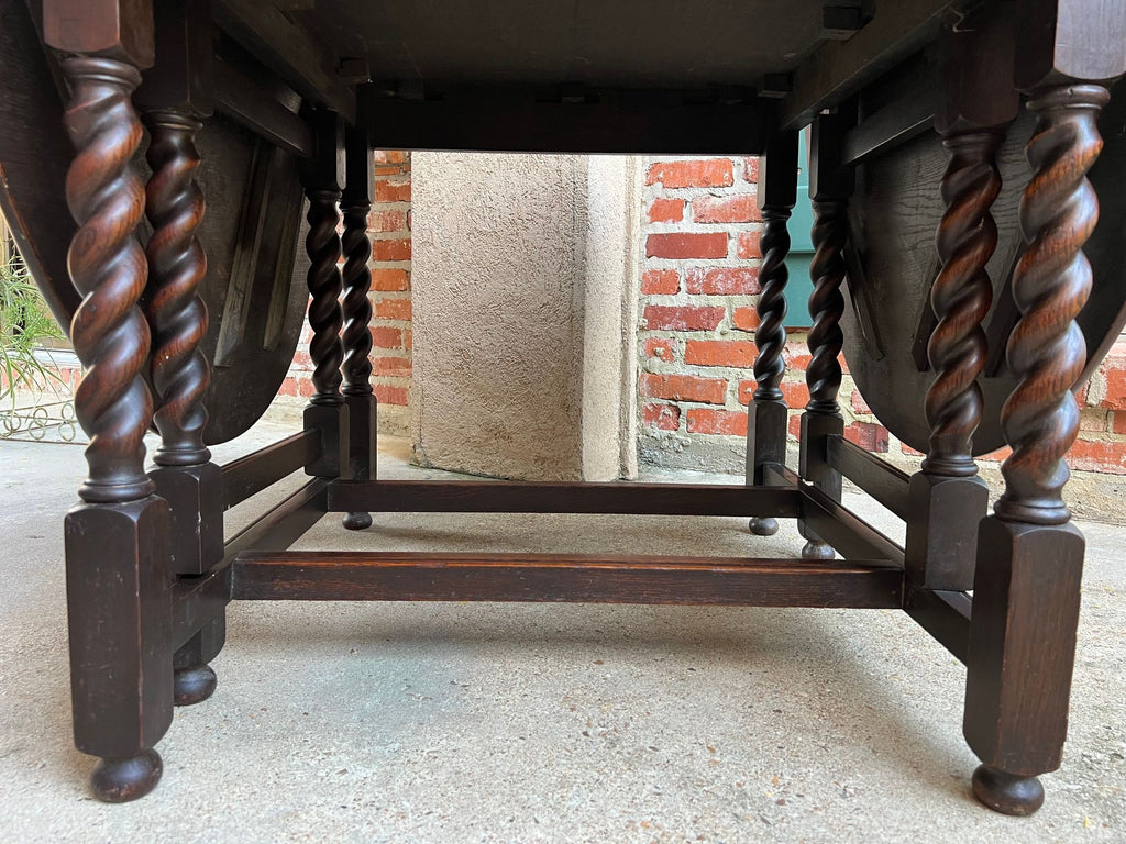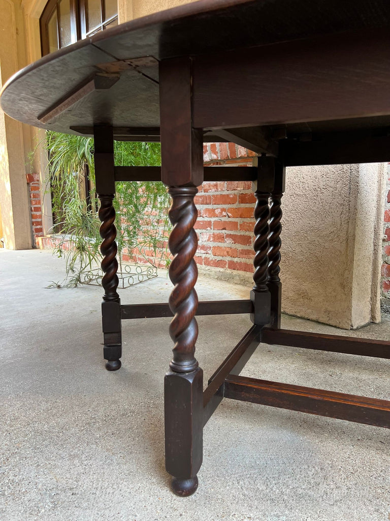 Antique English Drop Leaf Sofa Kitchen Table BARLEY TWIST Tiger Oak Gate Leg.